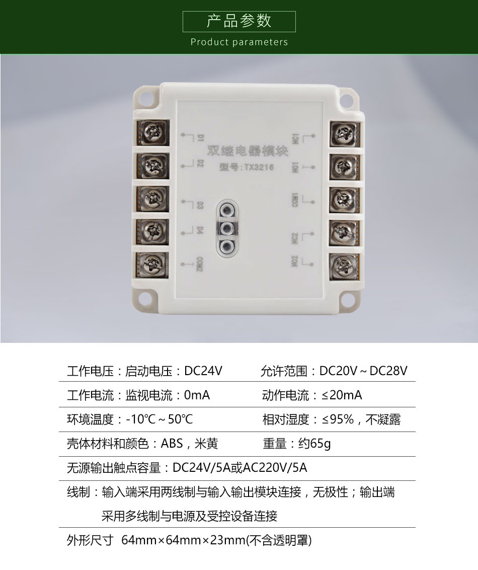 三、TX3216雙繼電器模塊技術(shù)參數(shù)