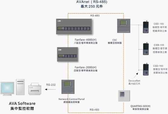 FANFARE-2000四區(qū)型極早期煙霧偵測主機,可以通過輸入模塊接入火災(zāi)自動報警報警控制器;也可以全部聯(lián)網(wǎng),并由AVA系統(tǒng)管理軟件對整個系統(tǒng)進行設(shè)置和監(jiān)控。AVA系統(tǒng)管理軟件安裝在消防控制室的計算機上,用戶可以通過它對整個探測系統(tǒng)的所有性能進行設(shè)置、調(diào)試和監(jiān)控。