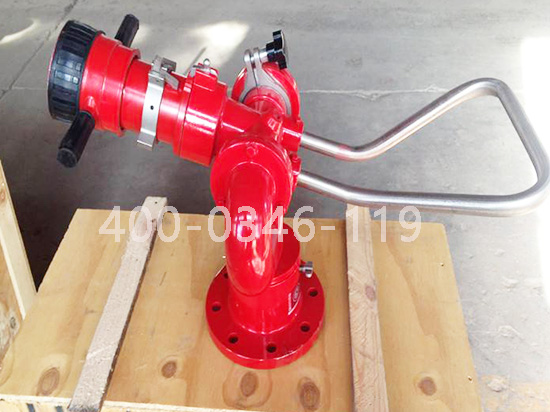 在安裝消防水炮時,為了避免消防旋轉和噴水過程中的消防水炮搖動,必須在短立管上安裝防搖托架,短路管上防搖托架的固定點與消防水炮法蘭之間的距離不應超過200mm。